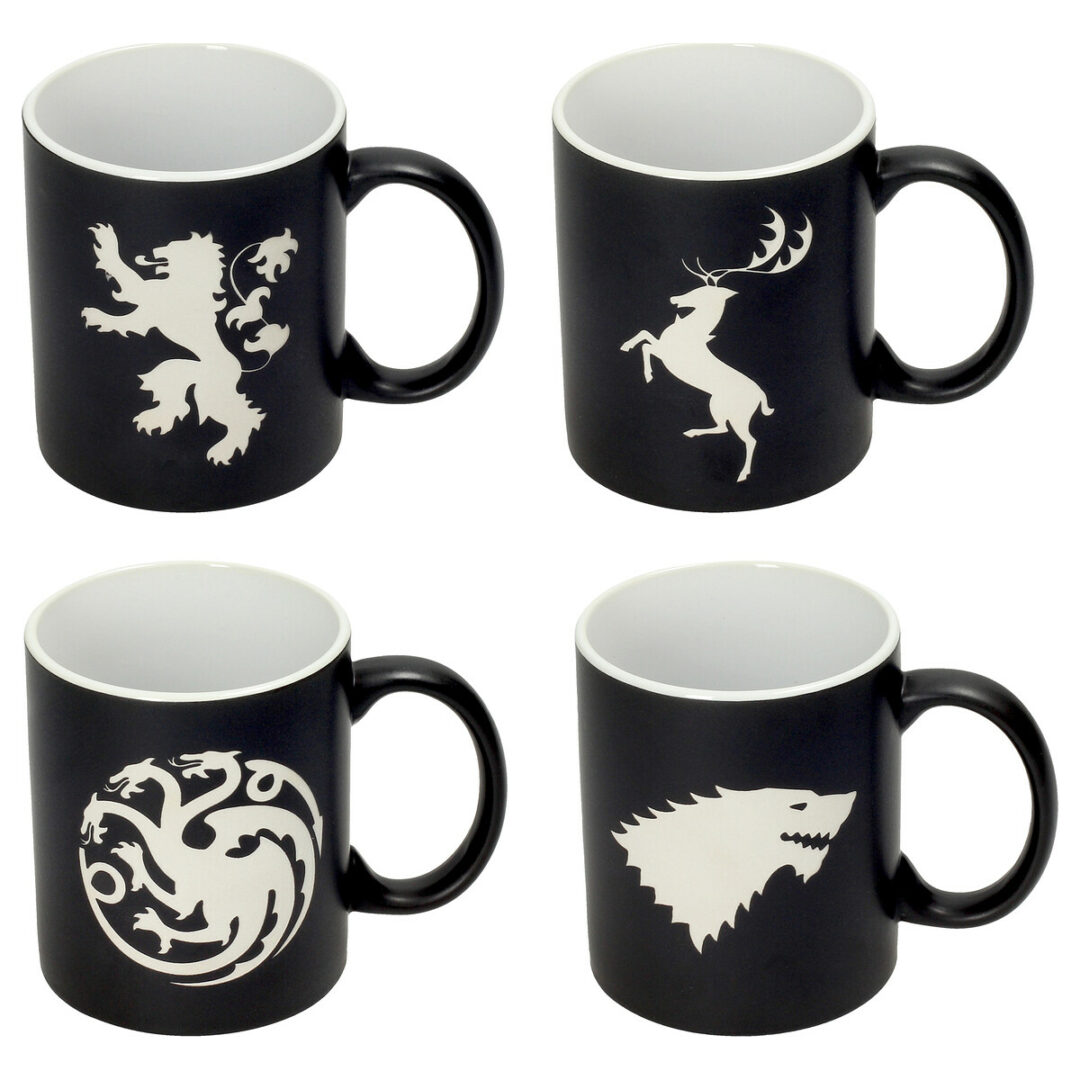 EMBLEMAS CASAS SET 4 TAZAS GRABADO LASER CERAMICA GAME OF THRONES