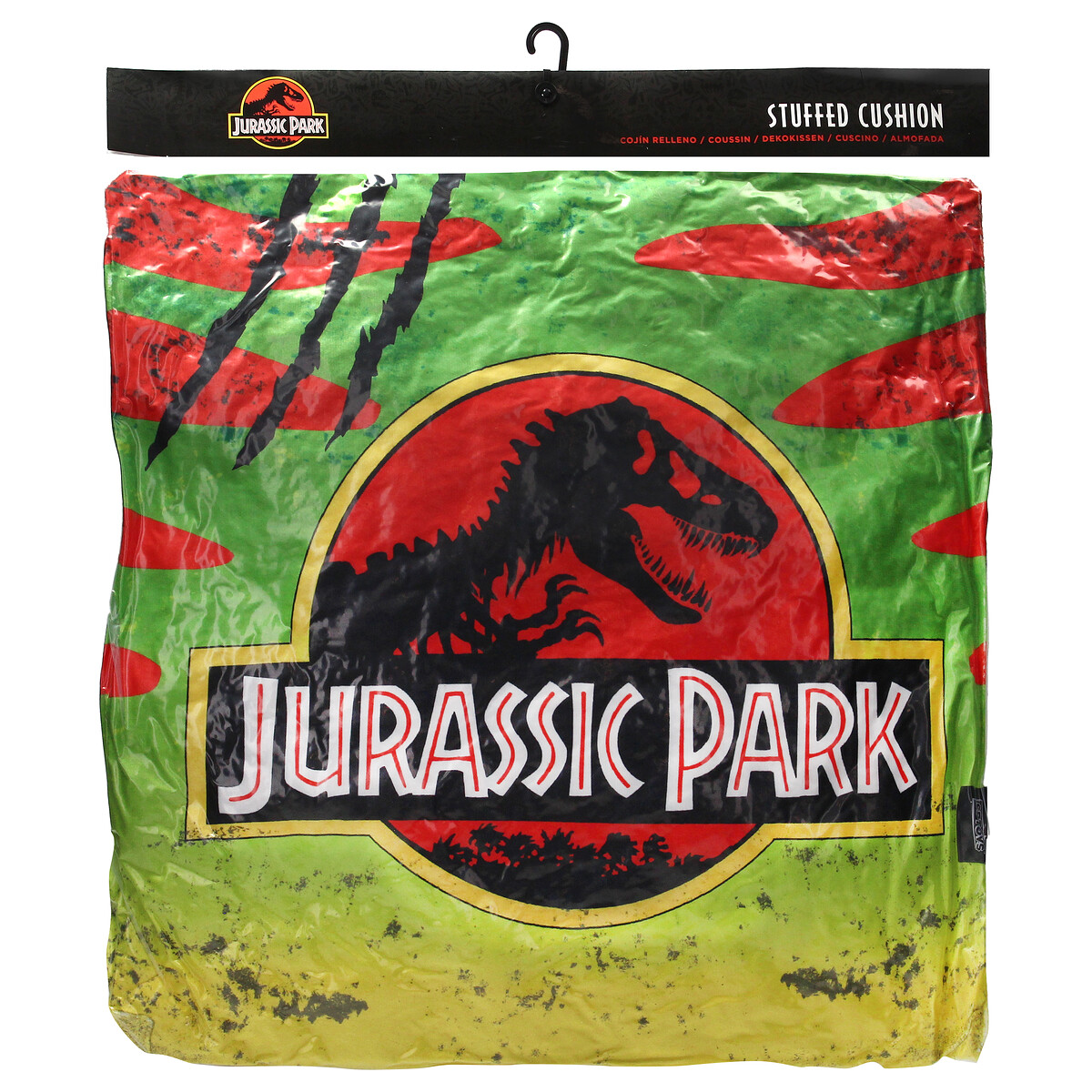 COJIN CUADRADO 45x45CM ENVASADO VACIO LOGO COCHE JURASSIC PARK