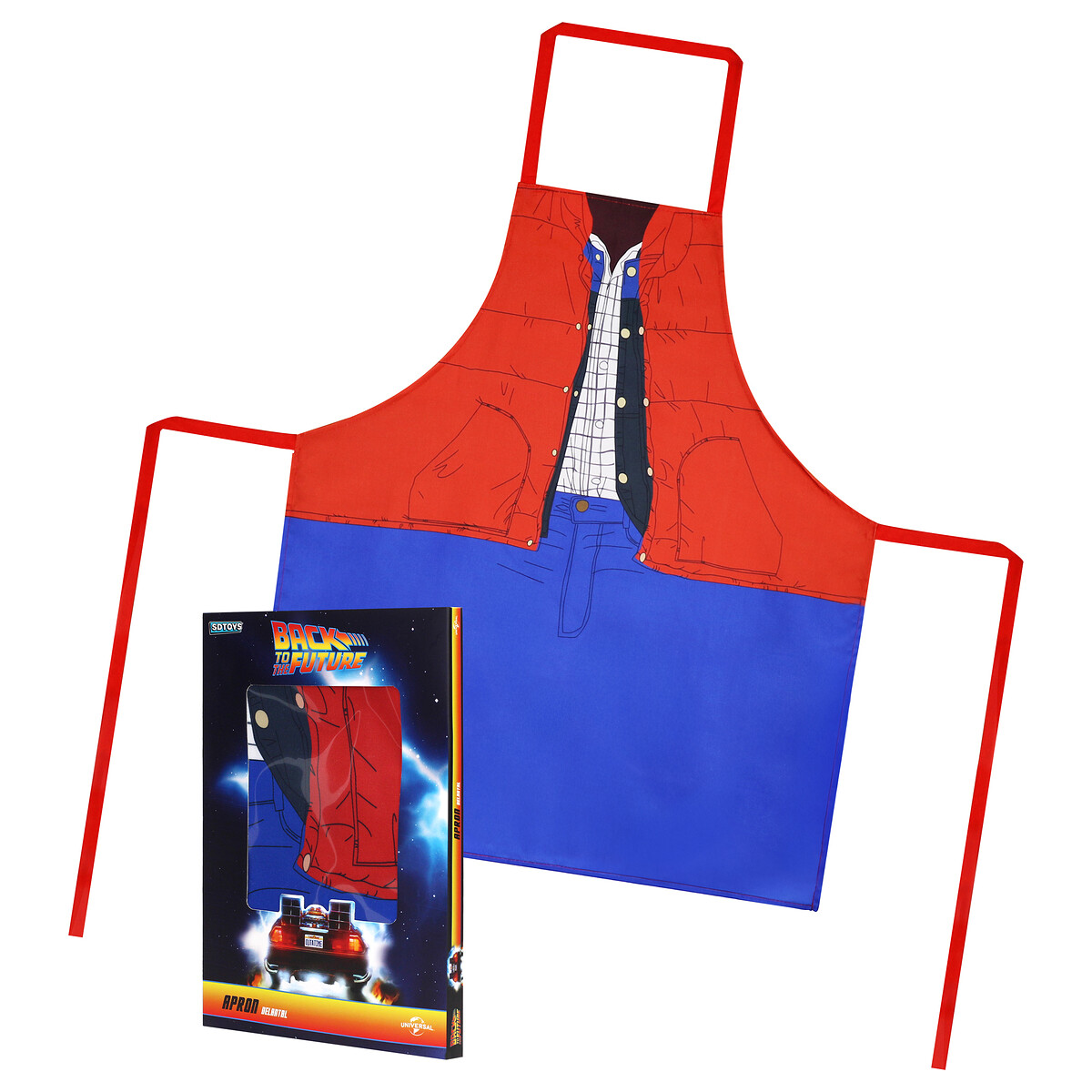 Para los cocineros del presente y del futuro, llega este divertido set de delantal para horno que emulan la vestimenta de Marty McFly de «Regreso al Futuro». El set se presenta en caja de cartón.
