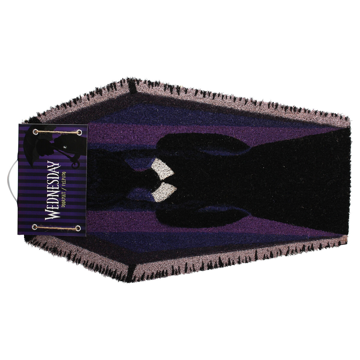 Looking for something truly unique? Our 60x40cm Coffin Doormat, made from coconut fibre, features Wednesday sleeping in a coffin. This doormat will add a macabre and gothic touch to your entrance, capturing the essence of the series.