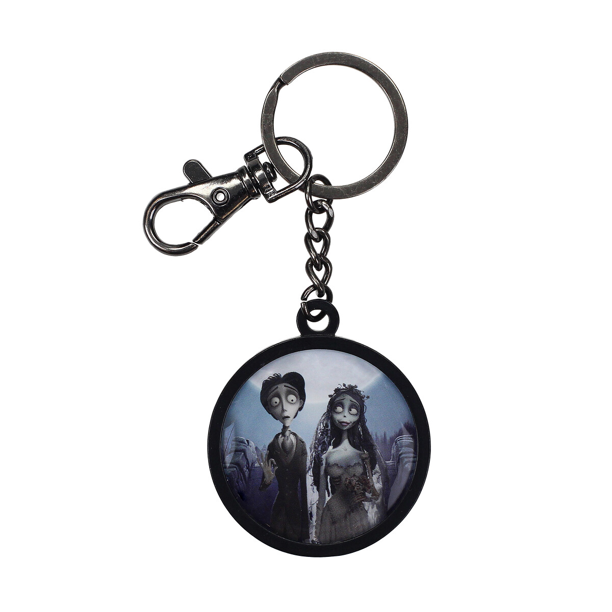 Este llavero metálico redondo captura a Victor y Emily en una de las escenas más memorables de «La Novia Cadáver», bajo la misteriosa luz de la luna. Con un acabado brillante y duradero, este llavero es el accesorio perfecto para decorar tus llaves o mochila, manteniendo siempre cerca a estos personajes queridos.