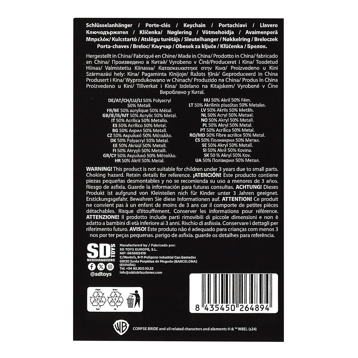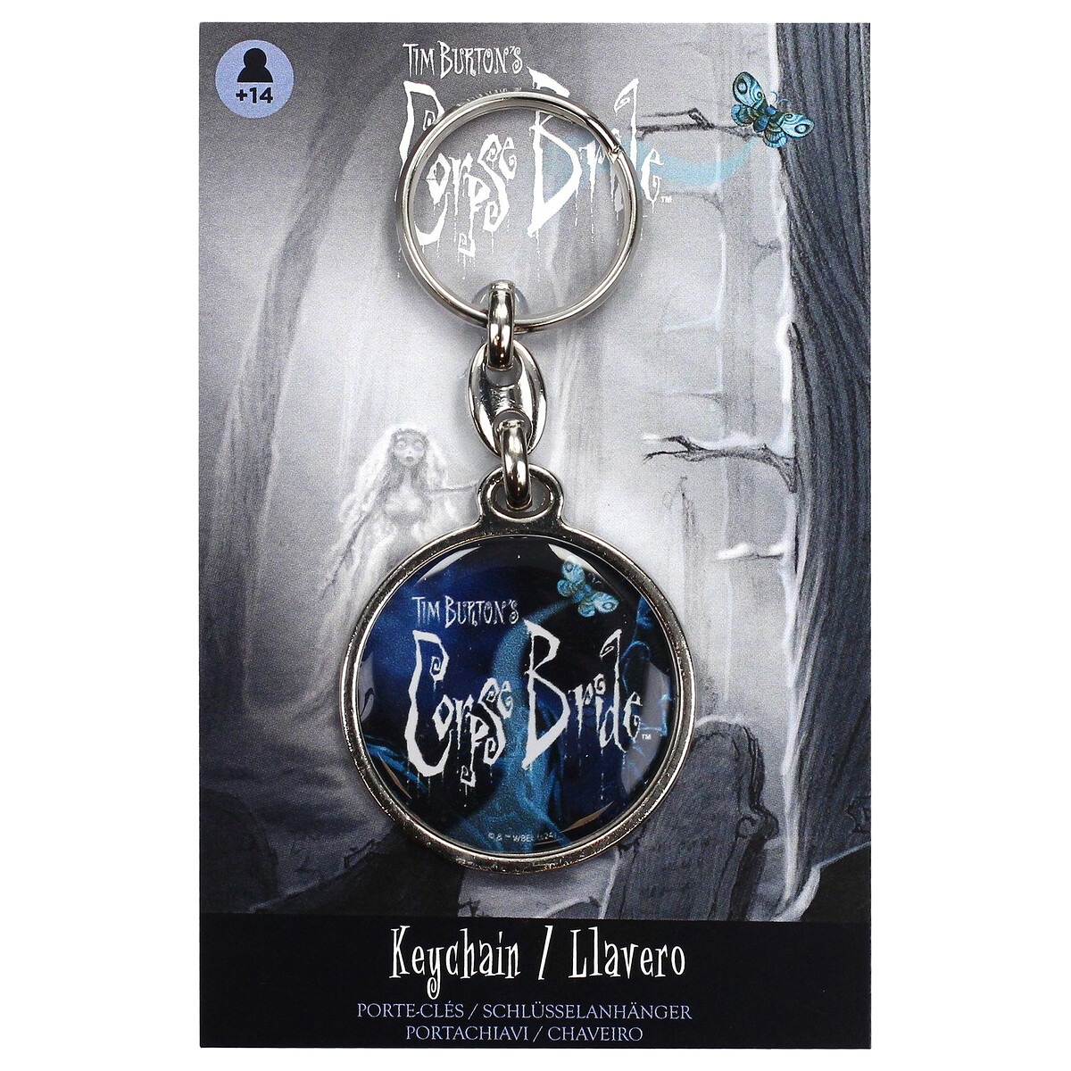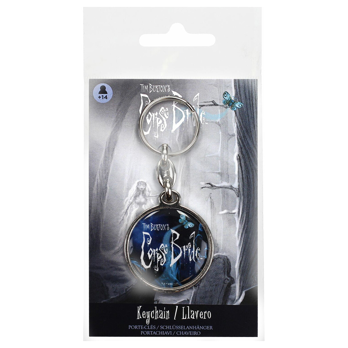 Un toque oscuro y elegante para tus llaves con el logo de The Corpse Bride. Este llavero metálico celebra la obra de Tim Burton con un diseño que resalta la esencia fantasmal y artística de la película.