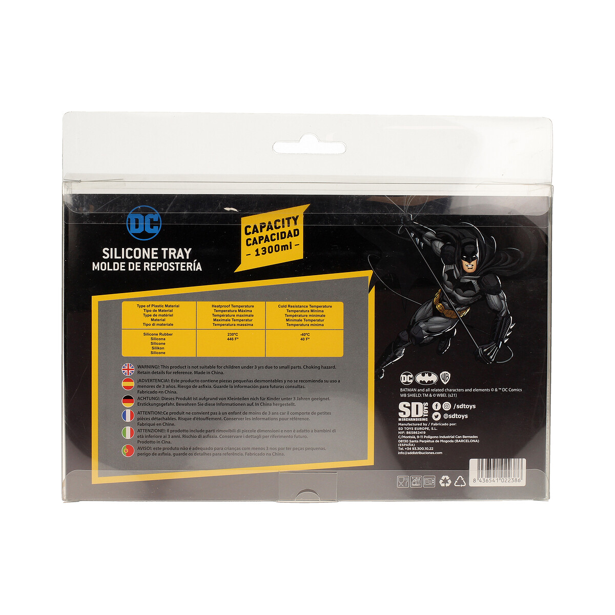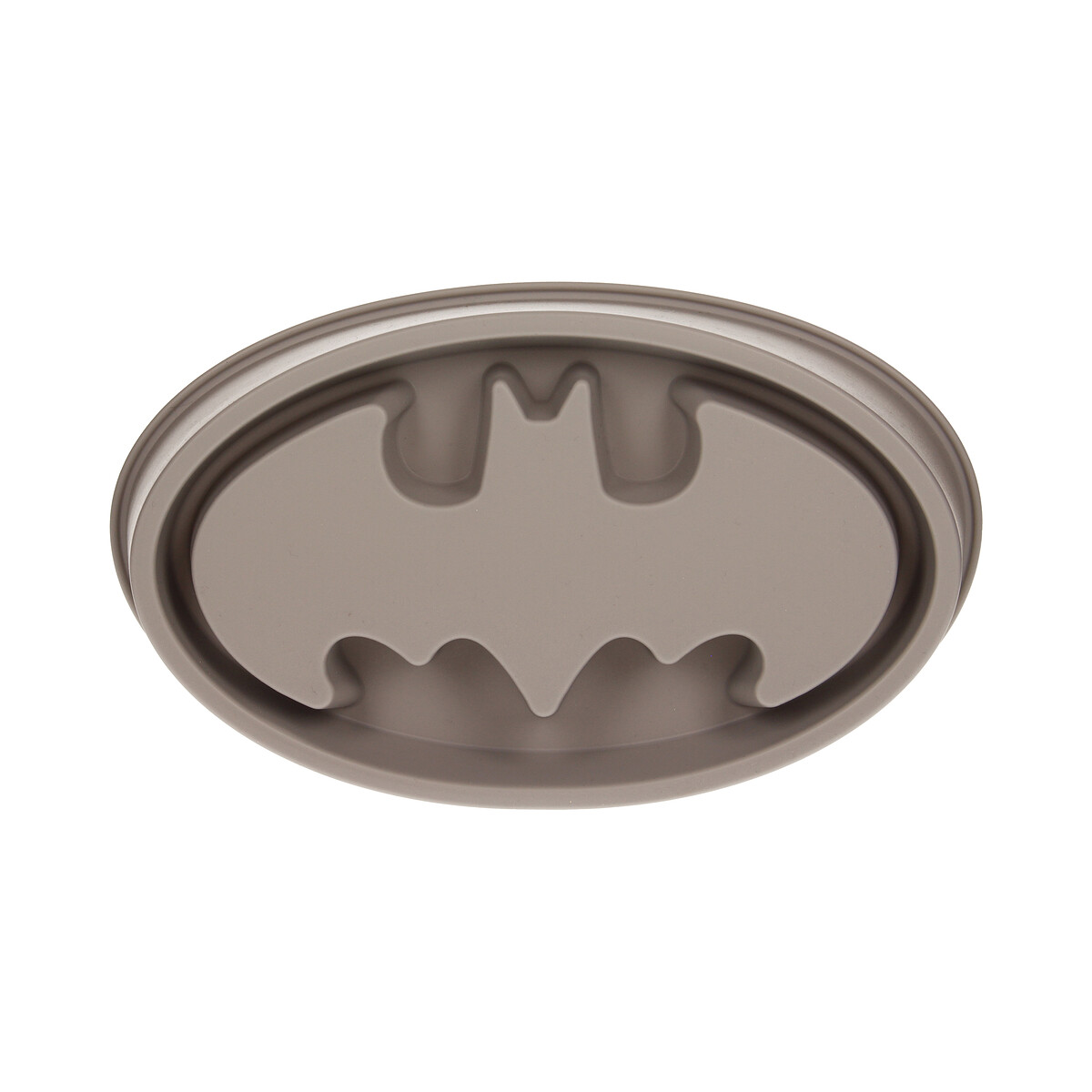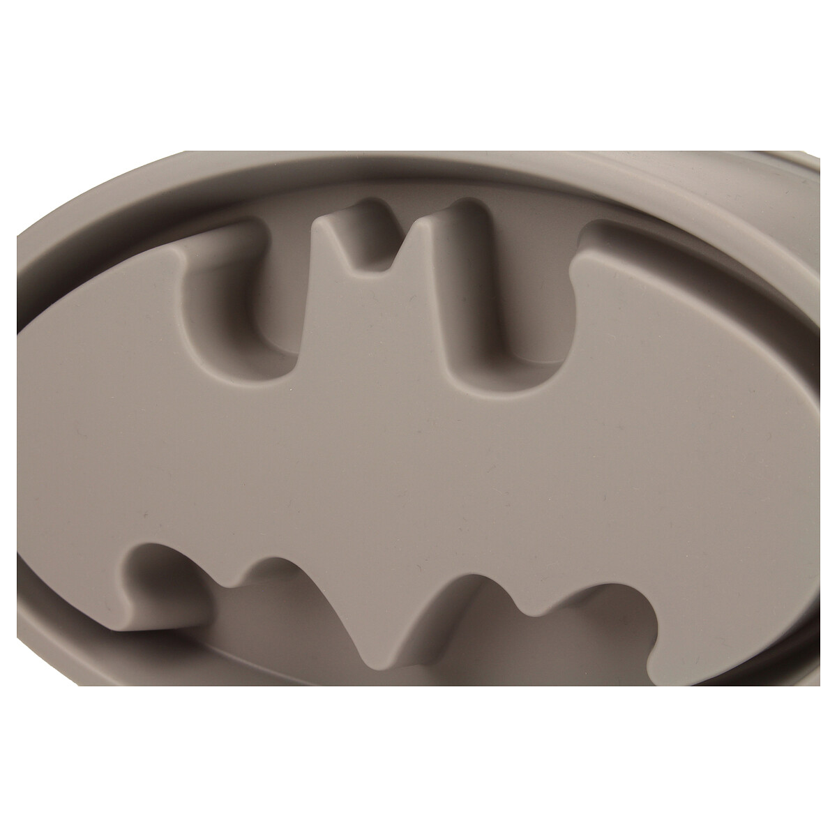 Molde para horno de silicona con la forma del logo de Batman. Mide 24×15 cm. Personaliza tus bizcochos y pasteles de una manera innovadora y divertida.