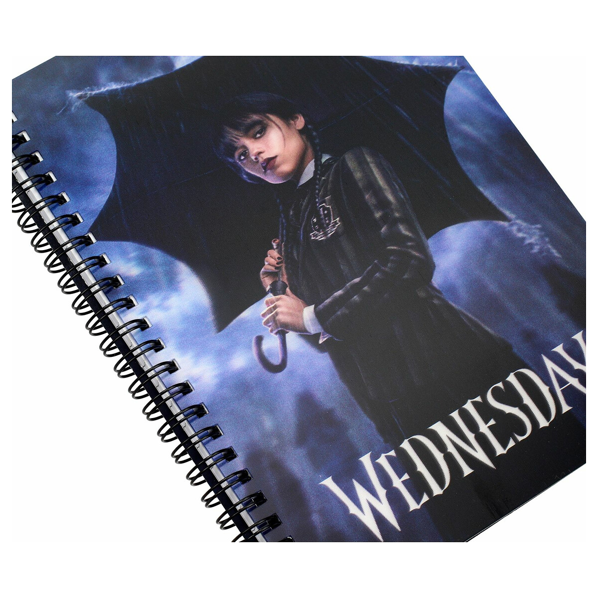 Captura la esencia melancólica de Wednesday con nuestra libreta de efecto 3D «Lluvia». Con su imagen impresa bajo el paraguas, te sumergirás en un mundo lleno de misterio y belleza. Ideal para tomar apuntes, escribir historias o simplemente dejar volar tu imaginación.