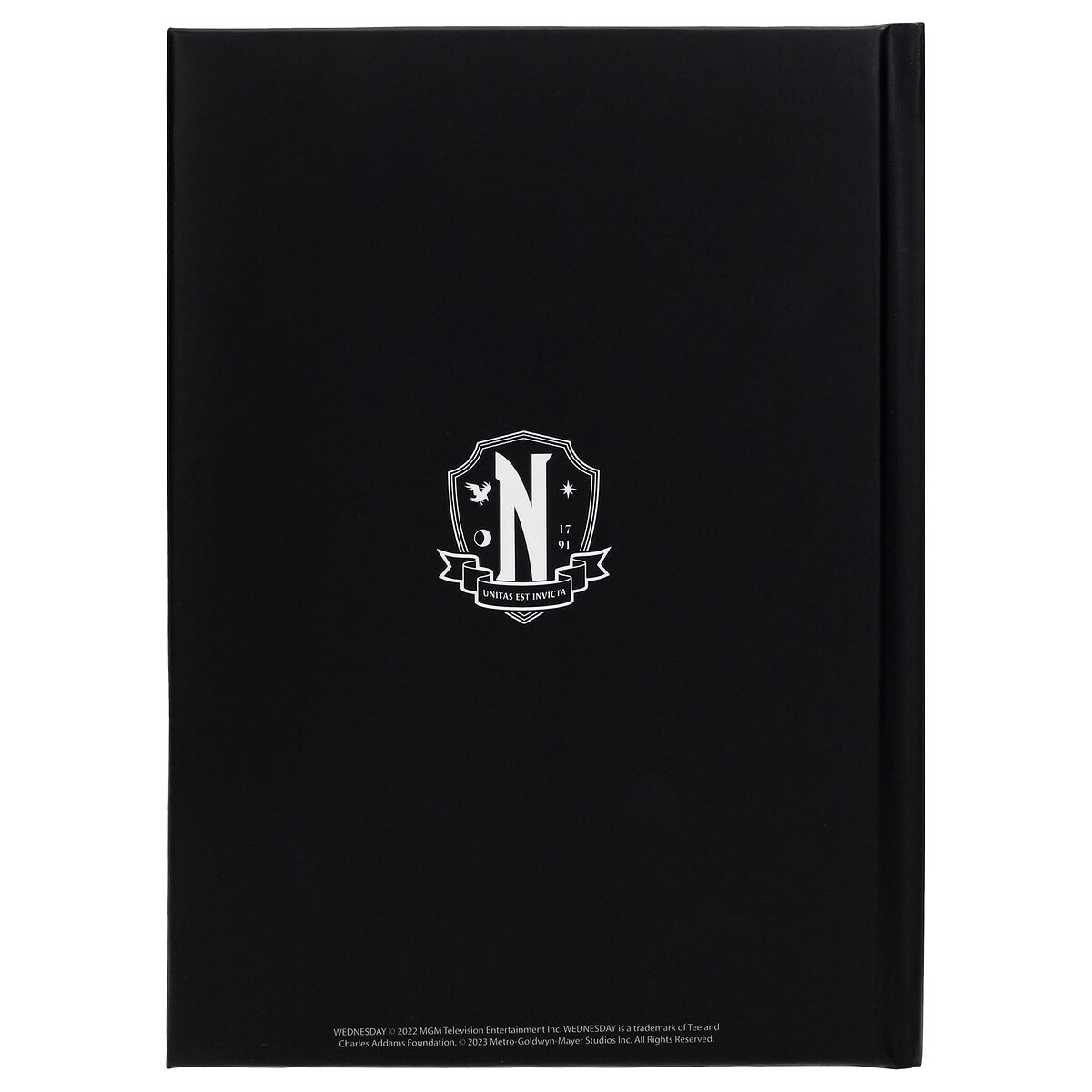 En esta libreta de Wednesday con luz, donde vemos su silueta mientras toca el chelo con un cuchillo delante del rosetón de su residencia, iluminándose al apretar el botón en la portada. Sumérgete en un mundo sombrío y cautivador mientras plasmas tus pensamientos en cada página. Deja que esta libreta ilumine tus ideas con su atmósfera enigmática y despierte tu creatividad en cada escritura.