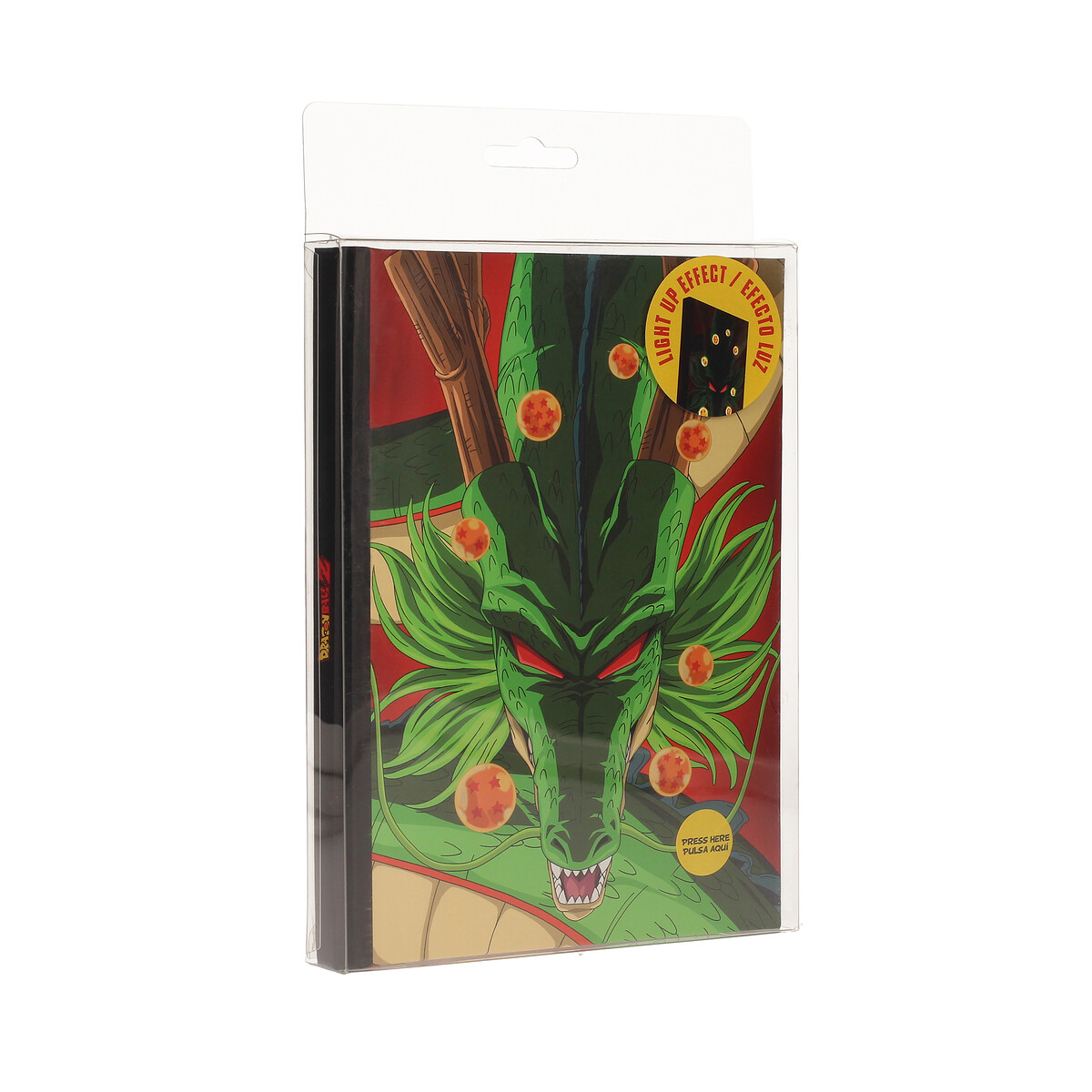 ¡Despierta tu espíritu guerrero con esta increíble libreta con luz de Dragon Ball Z! Con unas medidas de 15 x 20 cm, esta libreta es perfecta para llevar contigo a todas partes. Su espectacular diseño presenta a Shenron, el poderoso dragón, rodeado de las icónicas Dragon Balls, listo para conceder tus deseos. La característica única de esta libreta es su luz incorporada, que ilumina la portada, haciéndola destacar aún más y dándole un toque mágico y especial. Ideal para anotar tus ideas, sueños y aventuras, esta libreta con luz es un imprescindible para todos los fans de Dragon Ball Z. ¡Hazte con ella y lleva un pedazo del universo Dragon Ball a tu día a día!