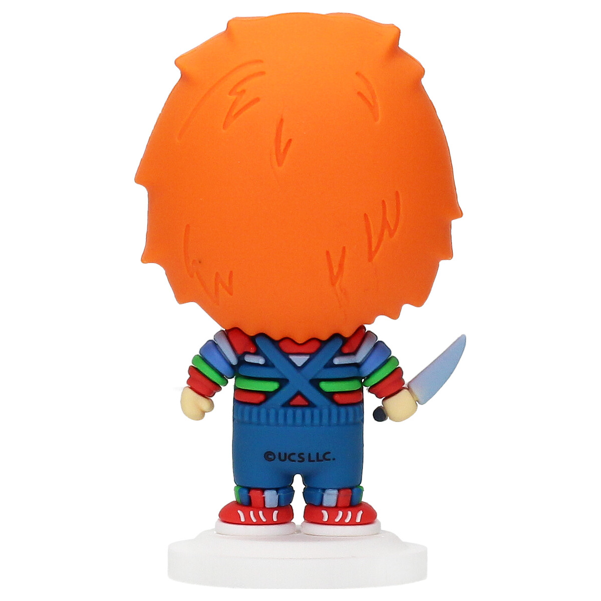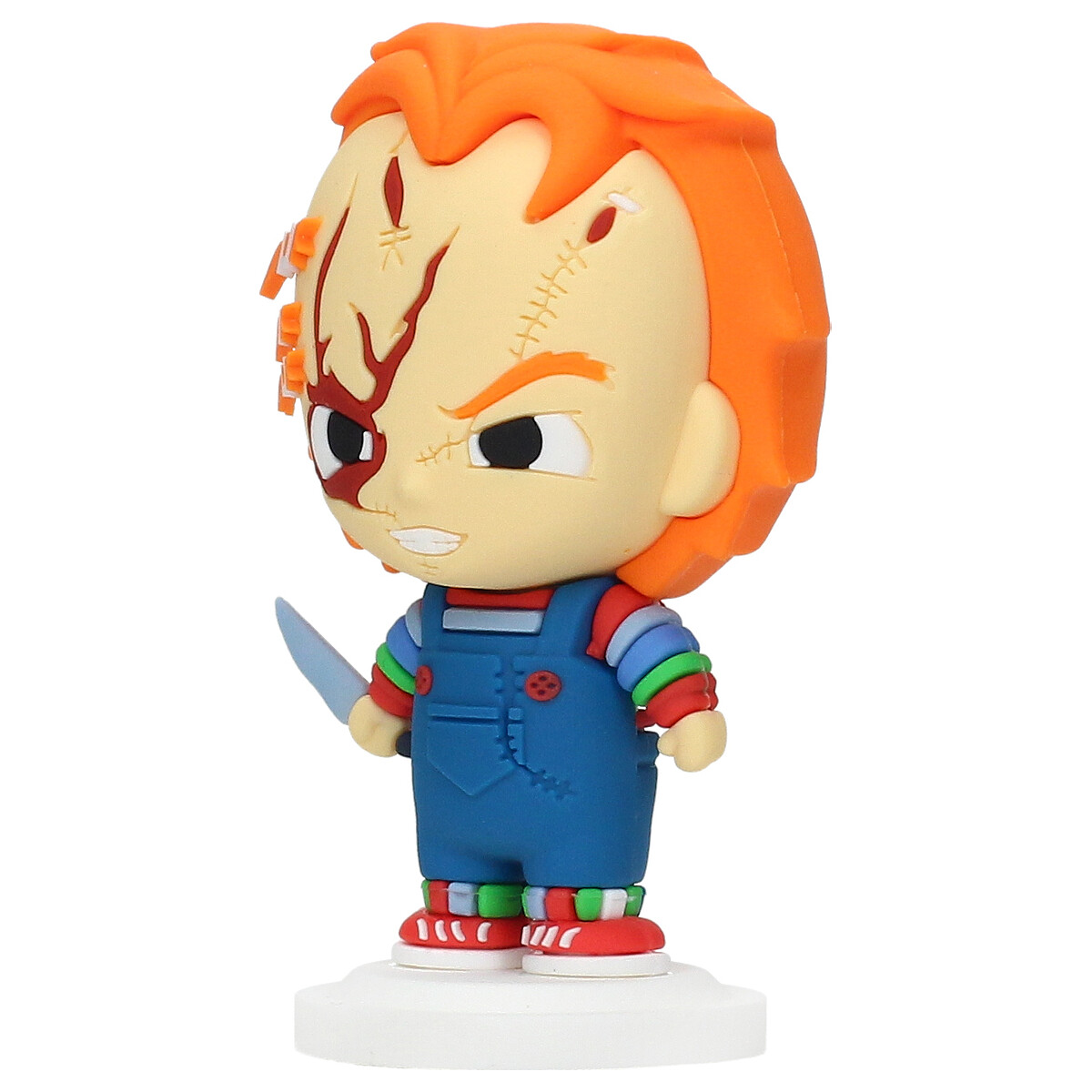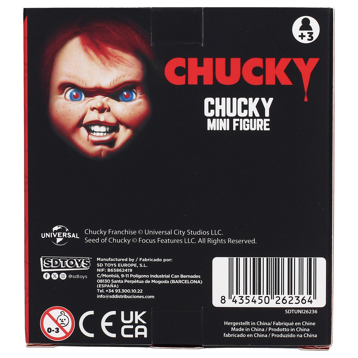 Añade a tu colección a Chucky en su versión de 7 cm, hecho de goma, perfecto para quienes adoran a este muñeco poseído por un asesino en serie. Con su clásico overol azul y su característica expresión macabra, esta figura es ideal para recordar la intensidad de Child’s Play y el horror que ha traído desde 1988.