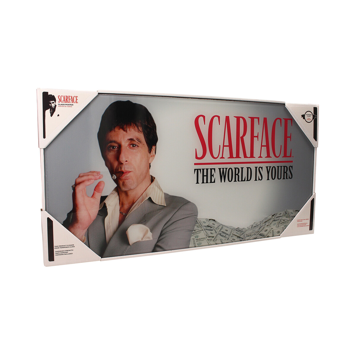 THE WORLD IS YOURS FONDO GRIS POSTER DE VIDRIO SCARFACE 60×30 CM