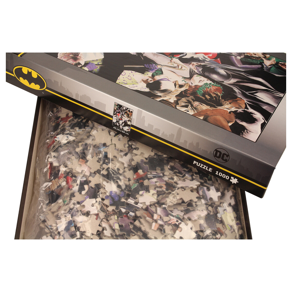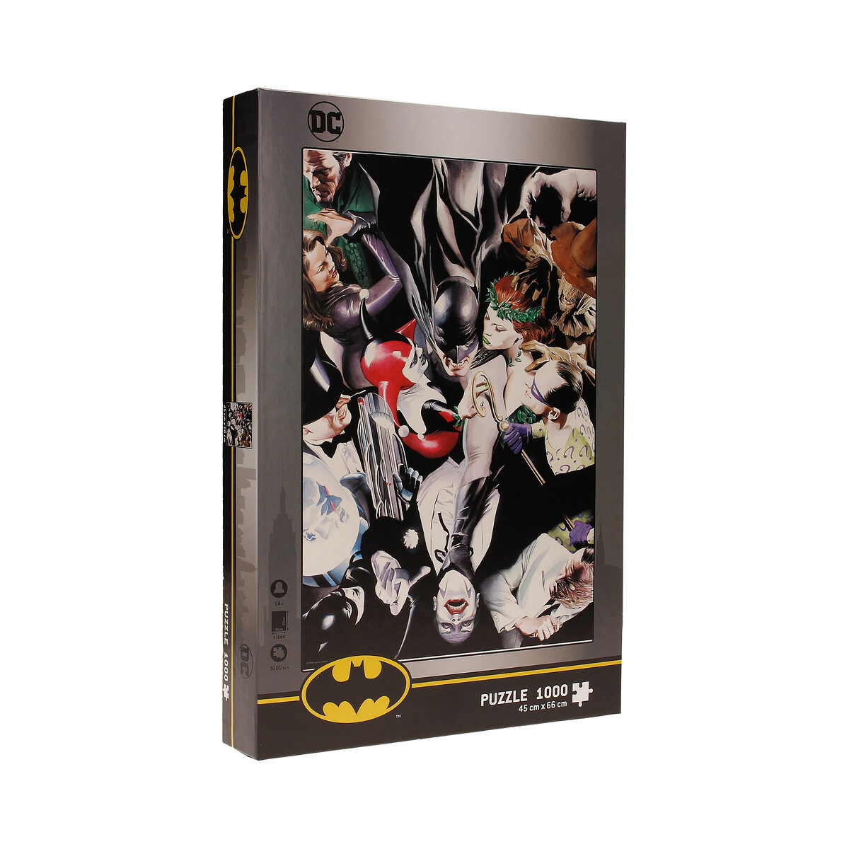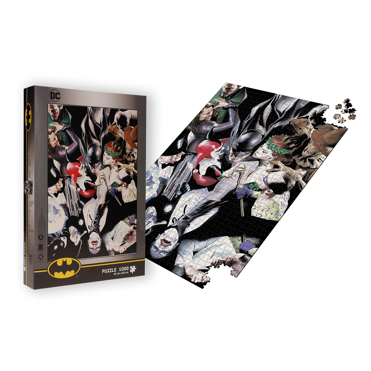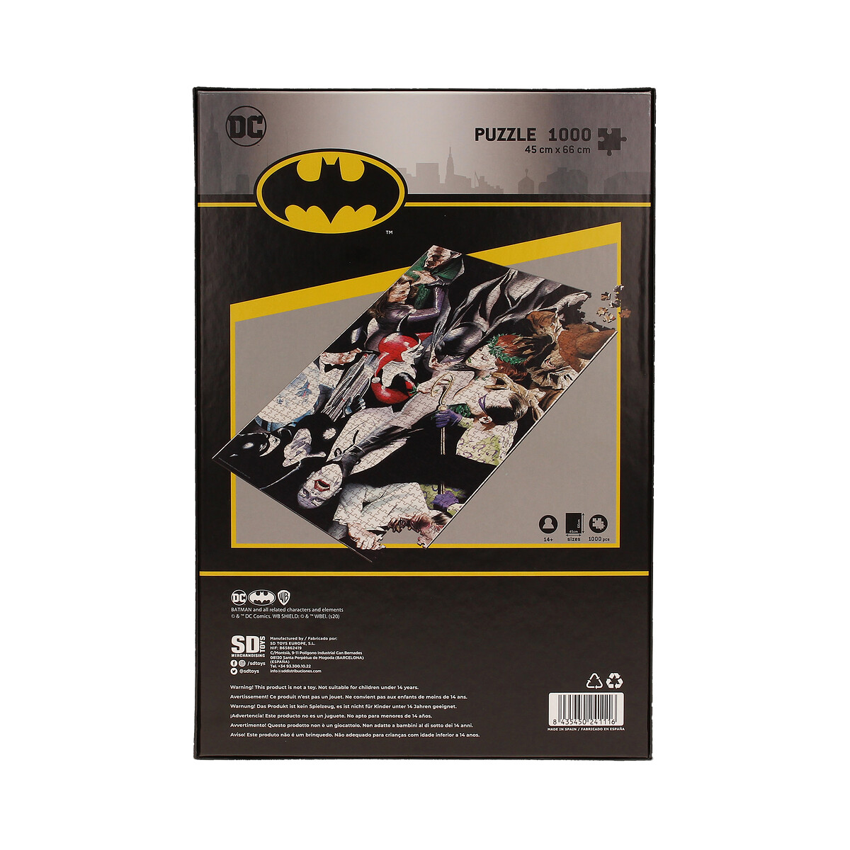 Sumérgete en el caos de Gotham City con este intrigante puzle de 1000 piezas inspirado en el universo de Batman. En su centro, encontrarás al Caballero Oscuro en un enfrentamiento épico, sujetando con firmeza al Joker mientras sus infames aliados y enemigos lo rodean. Desde la astucia del Acertijo hasta la seducción de Catwoman, pasando por la locura de Harley Quinn y el peligroso ingenio de Dos Caras, cada personaje está meticulosamente representado en esta cautivadora imagen. Con una calidad excepcional y detalles que capturan la esencia del universo de DC Comics, este puzle te proporcionará horas de entretenimiento mientras te sumerges en la eterna lucha entre el bien y el mal en Gotham. ¡No te pierdas la oportunidad de unirte a Batman en su misión contra el crimen y adquiere tu puzle de Batman de SD Toys hoy mismo!
