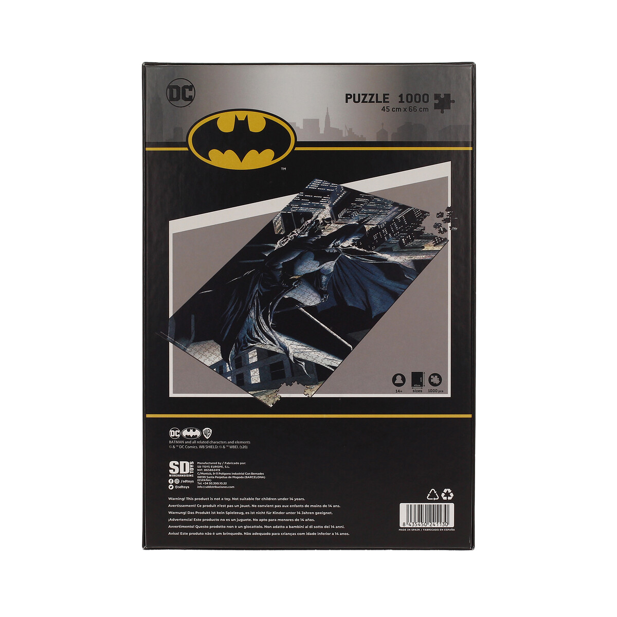 Adéntrate en el mundo de Gotham City con este puzle de 1000 piezas inspirado en Batman. En esta cautivadora imagen, el Caballero Oscuro se alza sobre un imponente edificio, vigilando con determinación la oscura y peligrosa Ciudad Gótica. Con una calidad excepcional y detalles que capturan la esencia del universo de DC Comics, este puzle te proporcionará horas de entretenimiento mientras te sumerges en el mundo del legendario superhéroe. ¡No te pierdas la oportunidad de unirte a la lucha contra el crimen y adquiere tu puzle de Batman de SD Toys hoy mismo!