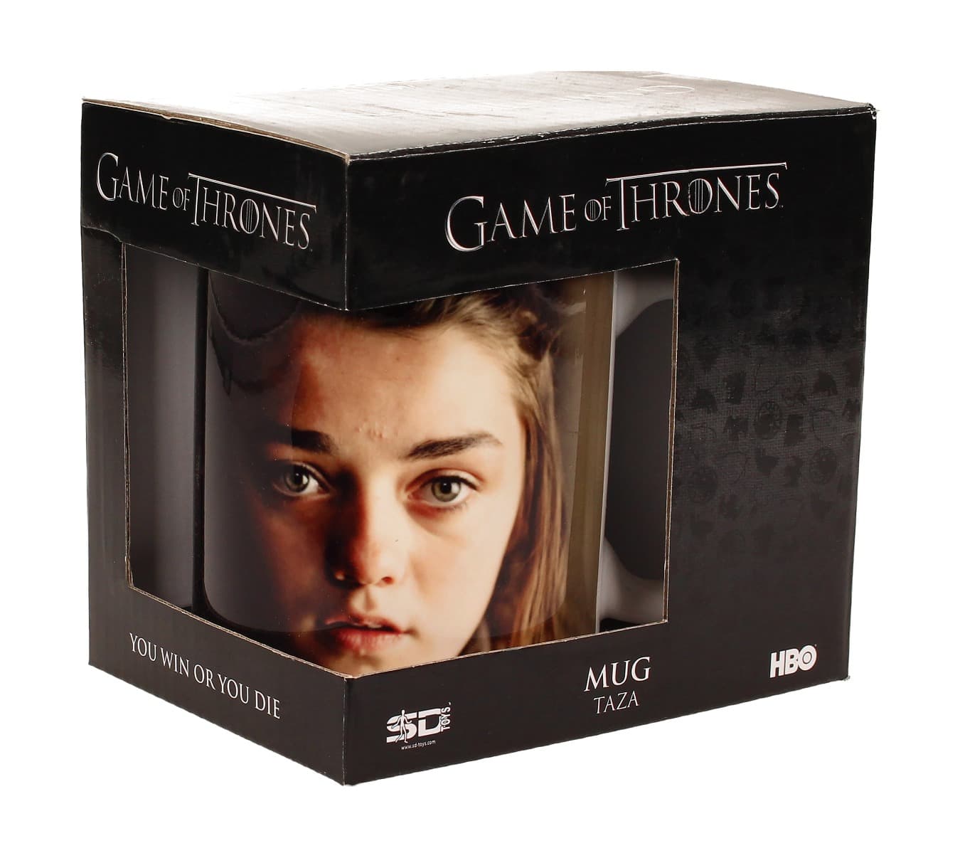 Taza de cerámica conl a imagen de Arya de la casa Stark. Juego de Tronos es una de la series más exitosa del momento y narra las violentas luchas entre varias familias nobles por gobernar los Siete Reinos. Producida por HBO y basada en los libros de George R.R. Martin