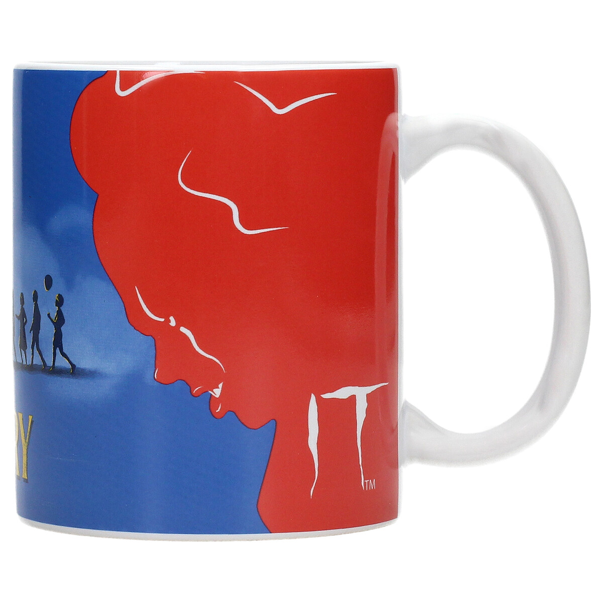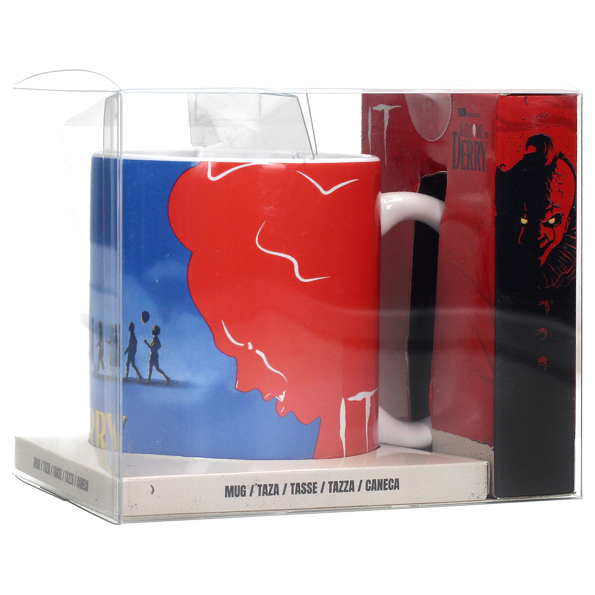 Sumérgete en el ambiente inquietante de Welcome to Derry con esta taza de 320 ml que combina dos icónicas representaciones del universo de IT: por un lado, la fachada del misterioso circo de Pennywise con estética retro y, por el otro, una potente silueta roja que evoca al temido payaso danzante.