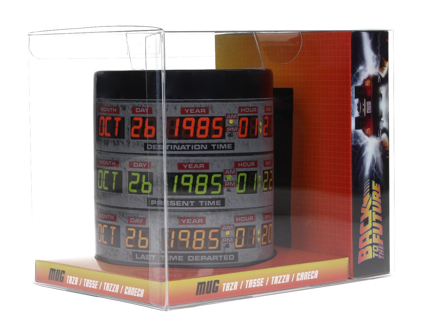 Si te encantaría viajar en el tiempo, ¡ahora podrás hacerlo, aunque sea usando tu imaginación mientras disfrutas de tu café! Las tazas de cerámica ilustradas con elementos icónicos de la saga «Regreso al Futuro» están ahora disponibles gracias a SD Toys. Elige la que más te guste y desconéctate del presente por unos instantes. Cada taza se presenta en una caja con ventana decorada a todo color con motivos de la película. Además, son aptas para microondas y lavavajillas, ¡así que podrás usarlas con total comodidad!