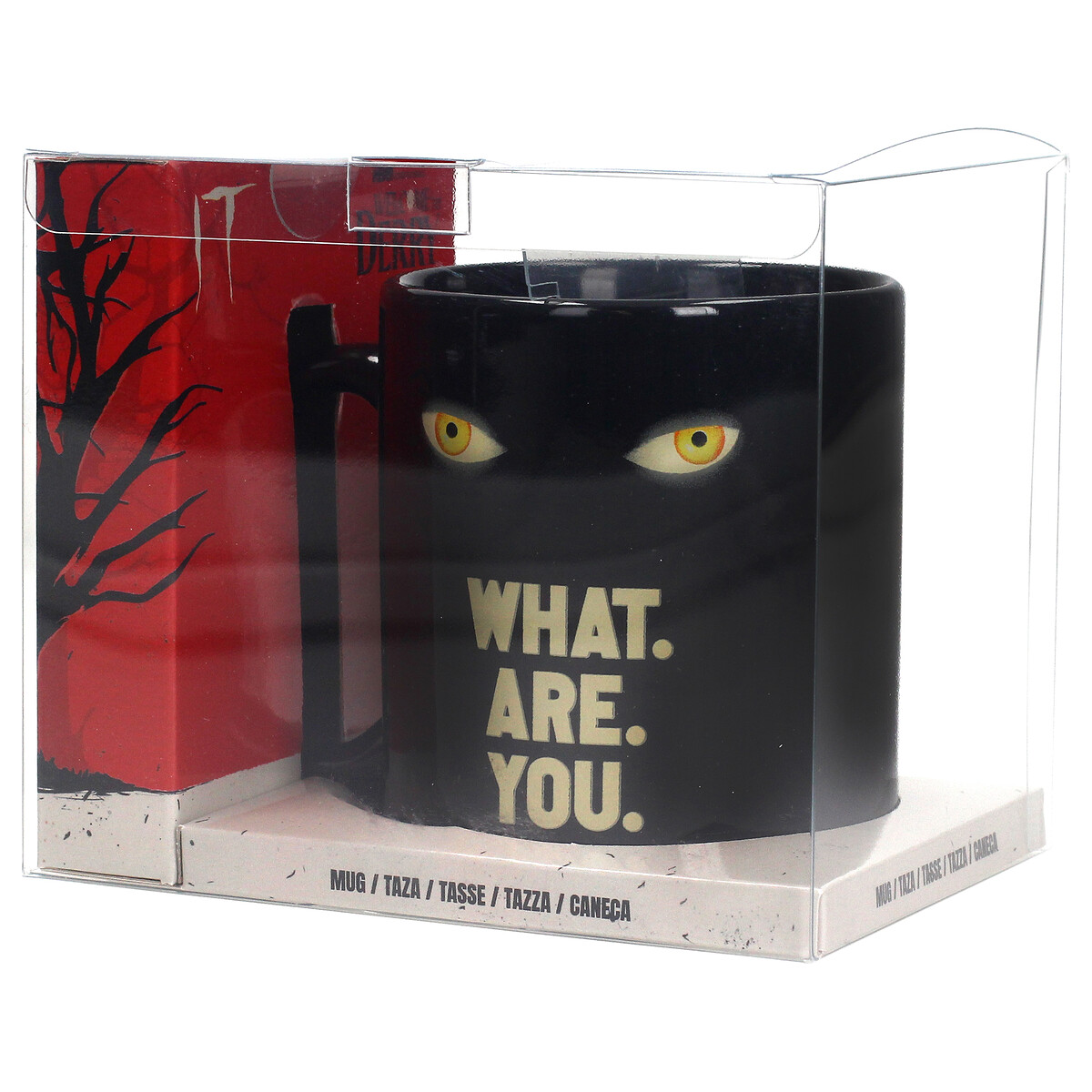 Esta taza en cerámica de 320 ml captura a la perfección la inquietante esencia de Welcome to Derry, la nueva expansión del universo de IT. Con unos ojos amarillos que parecen seguirte en cada sorbo y la frase “WHAT. ARE. YOU.” en relieve visual, es imposible no sentir ese toque de misterio que envuelve a la ciudad donde todo empezó.